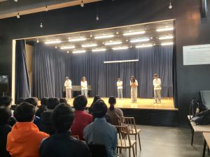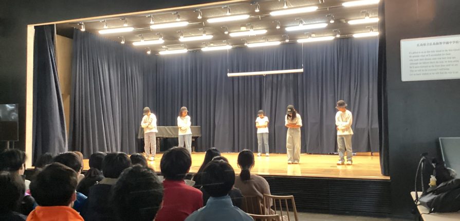 保健体育の授業で行っているダンスの講師として、安田女子大学の生関文翔先生に指導していただきました。「時間・空間・力」を意識して体を動かすことや、「上半身の長方形を崩す動き」をすることで、美しい動きに近づくことを学び、その達成に向けてグループや個人でより良い動きを探求していきました。発表会当日は、先生方やG10(高校2年生)、G12(高校3年生)の先輩方を招待し、これまでの学習の成果を見ていただきました。様々な観客がいる中で、自分たちで出し合った、振り付けを十分に発揮する事ができました。