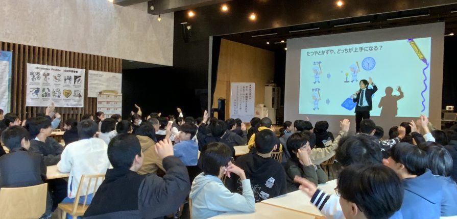 12日()、中学生、高校生それぞれを対象に、学校保健委員会の一環として健康教育講演会開催されました。広島大学 大学院 人間社会科学研究科 田村 典久先生をお招きし、学力・運動能力を高める眠りのヒミツ〜パワーアップぐっすり術〜というテーマで講演していただきました田村先生は科学的な根拠に基づいて、睡眠が心や脳にとっていかに重要かをわかりやすく説明してくださいました。特に、「今よりも15分早く眠ることが、将来の自分に大きな効果をもたらす」という視点が印象的でした。