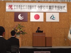 卒業生答辞では、代表生徒が、毛利元就の「三矢の訓」を例えにしながら、共にさまざまなことを乗り越えた仲間たちに感謝の気持ちを伝えました。