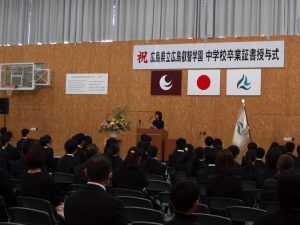 3月14日(土)、これまでお世話になった多くの方々の御臨席を賜り、第5回の中学校卒業証書授与式を挙行しました。