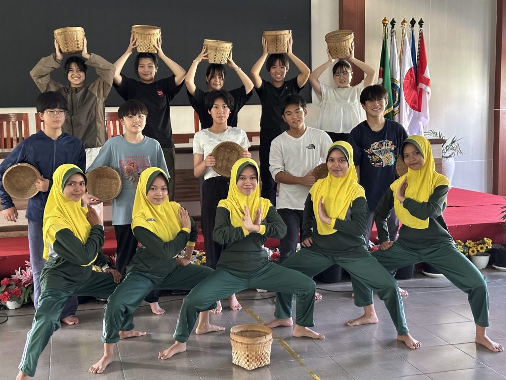 ラモンガン市の現地校では、伝統的な衣装での歓迎式典や舞踊、楽器の演奏といった温かいもてなしを受け、インドネシアの文化を肌で感じることができました。折り紙・日本語講座やバレーボールやバスケットボールなどのスポーツ交流、日本語・英語での合唱、伝統楽器の演奏体験など多岐にわたる活動を行い、交流を深めました。