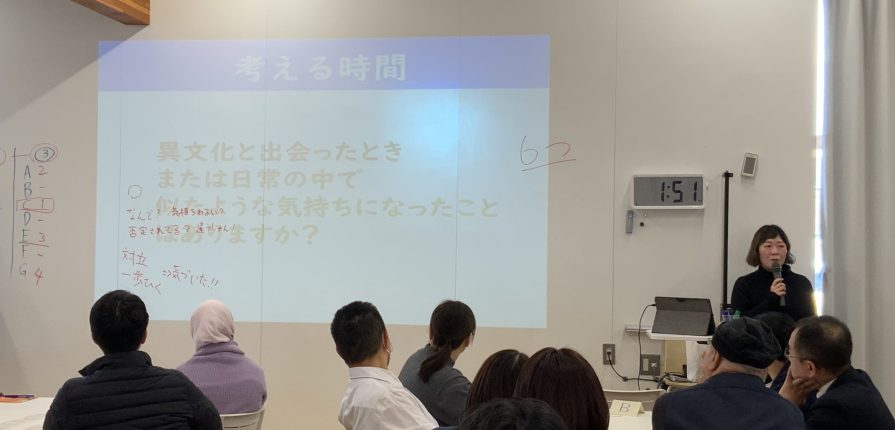 本校では、生徒及び教職員が、多様な文化を理解し、文化的背景が異なる人々が共に学び育つ「共育」ができる学校づくりを目指し、「Harmony Beyond Borders(国境を超えた調和)」プロジェクトを行っています。その一環として、1月7日(水)に、ひろしまNPOセンターより濱長様、増田様をお招きし、教職員を対象とした異文化交流ワークショップを実施しました。ゲームを通して「自分のルールが通じない場面」や「思いを伝えようとしても伝わらない場面」を体験し、本校に在籍する留学生の気持ちを擬似的に理解する機会となりました。今後もグローバルリーダー校として、より望ましい学校文化の創造に向け、学びを深めていきます。