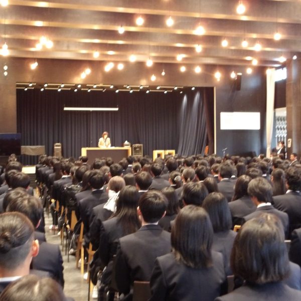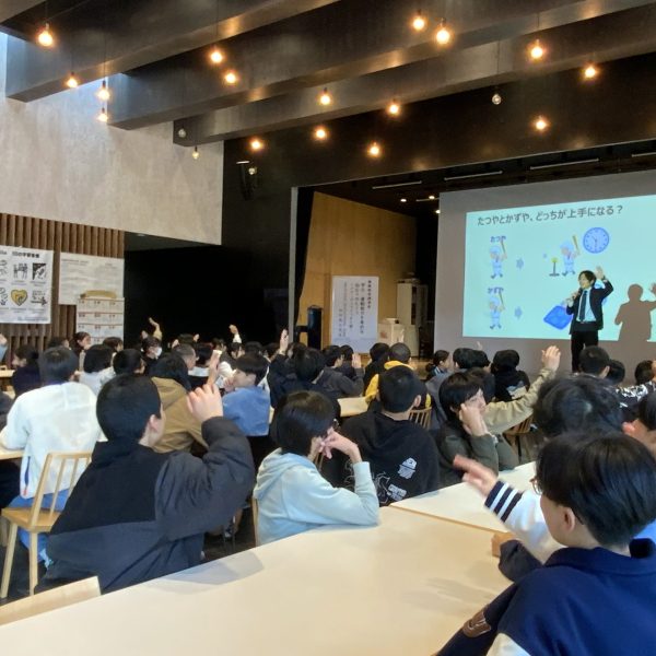 12月3日(水)、中学生、高校生それぞれを対象に、学校保健委員会の一環として健康教育講演会が開催されました。広島大学 大学院 人間社会科学研究科 田村 典久先生をお招きし、「学力・運動能力を高める眠りのヒミツ〜パワーアップぐっすり術〜」というテーマで講演していただきました。田村先生は科学的な根拠に基づいて、睡眠が心や脳にとっていかに重要かをわかりやすく説明してくださいました。特に、「今よりも15分…